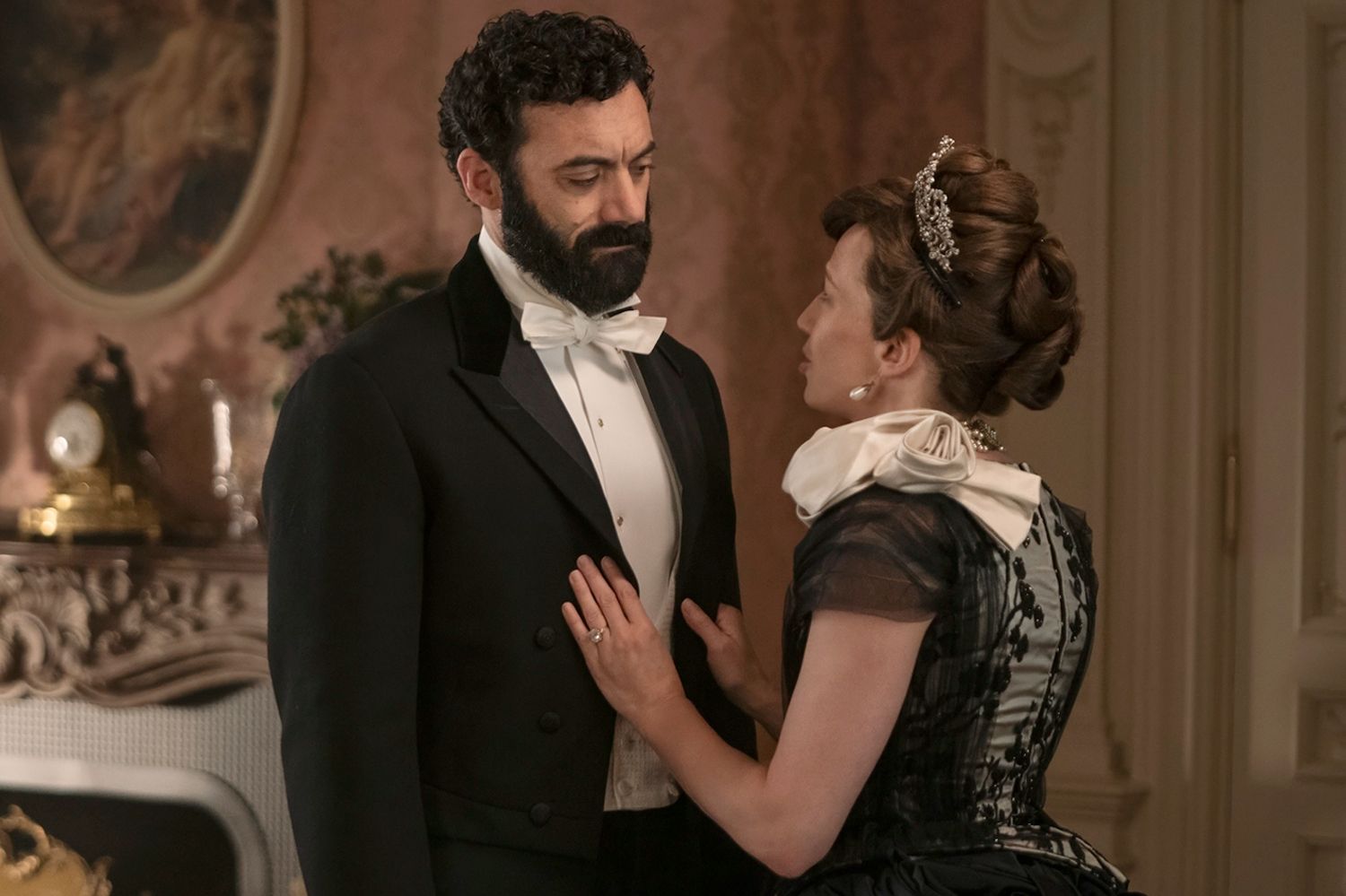 In the season 3 finale (“My Mind Is Made Up,” written by Fellowes and Sonja Warfield), things pick up immediately after the penultimate episode’s shocking conclusion: the surprise shooting of railroad baron George Russell (Morgan Spector). But that’s only one of many emotional turn of events faced by Bertha (Carrie Coon) and her children, Larry (Harry Richardson) and Gladys (Taissa Farmiga).