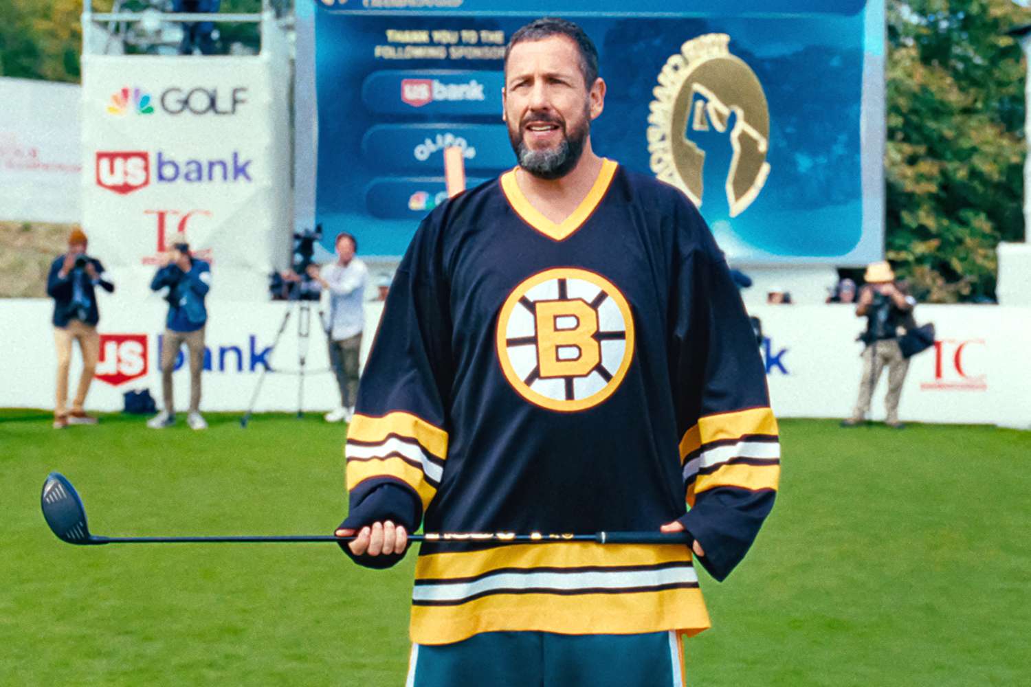 In addition to Sandler, the film also stars returning cast members Julie Bowen as Gilmore’s wife, Virginia Venit, and Christopher McDonald as Gilmore’s longtime nemesis, Shooter McGavin. The sequel also features Ben Stiller, Bad Bunny, Travis Kelce, Conor Sherry, Ethan Cutkosky, Philip Fine Schneider, Maxwell Jacob Friedman and Blake Clark, among several other real-life golfers and celebrity cameos.
